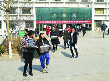 昨日中午,结束了清华美院色彩考试的学生陆续走出考场。王晓雨摄