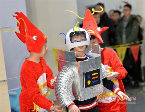 据了解,2004年,头脑奥林匹克在青岛生根发芽,我市中小学以头脑奥林匹克活动作为开展创新教育的重要载体,全面培养学生的创造力。近六年青岛先后获得中国上海头脑奥林匹克竞赛一等奖67个,获得世界头脑奥林匹克竞赛7枚金牌、2枚银牌和2枚铜牌。青岛太平路小学、青岛实验初级中学、城阳区实验小学被评为中国头脑奥林匹克活动特色学校。图为《古典……演绎经典的伪纪录片!》比赛。