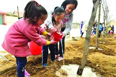 晚报讯 近日,青岛宁夏路小学家委会联合手拉手合作学 校——平 度市田庄镇官庄小学,共同开展了 “手拉手,心连心,共植绿色希望”小伙伴结队植树活动。