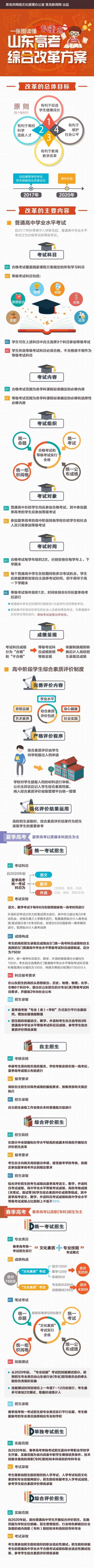 一图读懂山东高考改革方案 2020年起不分文理科 2018-03-28 13:02 array(1) { [62113]=> array(2) { [4]=> array(1) { [0]=> string(15) "青岛新闻网" } [2]=> array(2) { [0]=> string(6) "180328" [1]=> string(18) "山东高考改革" } } } 青岛新闻网 0 3月27日下午,山东省政府新闻办公室举行新闻发布会,邀请教育厅主要负责同志等解读《山东省人民政府办公厅关于印发山东省深化高等学校考试招生综合改革试点方案》。山东高考改革有哪些变化,小编带你一张图看清楚!