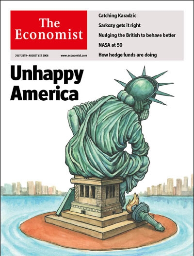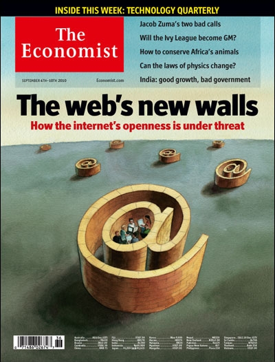 它的文字简洁又充满幽默,这样的风格也体现在了它的封面上。这么多年来,《经济学人》创造了无数经典的封面,创意大胆又举重若轻,屡屡让人在淡然一笑之余又深深折服于其智慧。