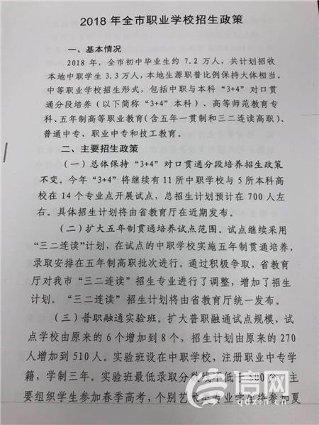 2018年,全市初中毕业生72400人,其中市内三区和崂山区(以下简称“四区”)毕业生15600人。全市普通高中计划招生37700人,其中四区普通高中计划招生9710人。