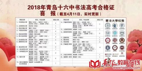 青报教育在线讯iqdedu.com “苏老师,我拿到四川美术学院的合格证了,山东省第一!”“许老师,孩子拿证了,北京师范大学28名!”……近期,随着各高校书法校考成绩的陆续公布,青岛16中书法班喜报不断,目前已有67人次取得各大高校的书法专业合格证。