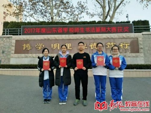 高三书法班书法老师苏会婷告诉青报教育在线:“陈俊峰专业能力一直很突出,入学时专业测试满分。他是学校篆刻社团的社长,在校期间多次参加比赛获奖。除了尖子生,基础薄弱、零基础的学生拿证情况也相当不错。零基础入校的张在天同学,书法学习进度一直都比较慢,在去年十月一之前专业还没有太大起色,学校老师跟家长、学生多次沟通后,进行了调整,在今年艺考中取得了中央财经大学第26名的好成绩。曹宇同学入学时基础也非常一般,但是这个孩子敢写,写字很放得开,经过这三年的不断学习和练习,在今年的艺考中取得西安交通大学20名、曲阜师范大学53名和齐鲁理工学院53名的好成绩。”