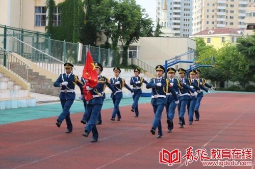 据了解,国旗班接受武警青岛支队的专业训练,有专门的制服,每周进行一次思想教育和业务训练。国旗班成员之间也常常互相激励,这些同学品德高尚,成绩优异。去年,学校第三届国旗班的三名升旗手全部都升入青岛二中。