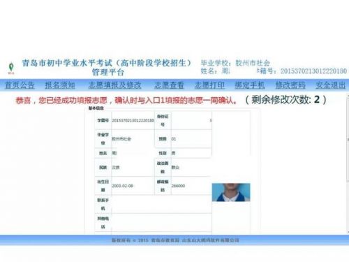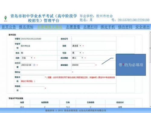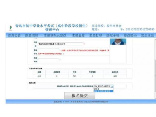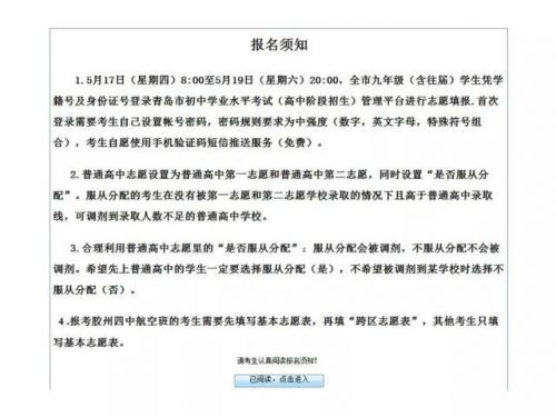 青岛2018年中考志愿填报说明