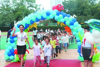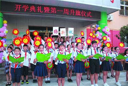 青岛嘉峪关学校的开学典礼放在上午10时30分举行,在班主任老师的带领下,一年级的小学生们兴高采烈地走过寓意启航求知的拱形门,领取了学校特别设计的《开学护照》,正式成为嘉峪关大家庭的一员,开始了自己的小学生涯。三年级的学生用诗歌和快板的形式进行了生动的展示,号召同学们牢记习爷爷的教导,努力成长为担当民族复兴大任的时代新人。