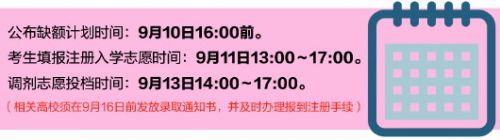 考生可填报1次注册入学志愿,均实行平行志愿。夏季高考文理类、艺术类、体育类及春季高考考生均可填报12个高校志愿,每个高校志愿可填报6个专业志愿及1个专业服从调剂志愿。考生可同时填报高校是否服从调剂志愿(选择高校服从调剂的考生视为服从调剂任何不满额的高校和相关专业)。同时参加春季高考和夏季高考的考生,如在集中录取阶段已被春季高考、夏季高考中的一类或两类录取,不能填报注册入学志愿;如考生春季高考、夏季高考均未被录取,只能选择其中一类填报注册入学志愿。