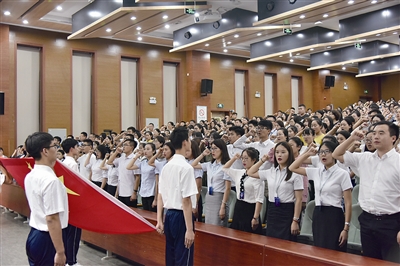 本报讯 昨日,市教育局举行青岛市新教师宣誓仪式暨最美教师事迹报告会,来自市内三区、崂山区、局属单位及部分高校近600名新任教师、青年教师代表面向国旗庄严宣誓,郑重承诺履行教师职责,落实教师誓词。会上,2018全国教书育人楷模、平度市朝阳中学教师吕文强等三位优秀教师作了事迹报告。