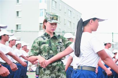 琴岛学院让退役复学的高年级大学生担任军训教官。
