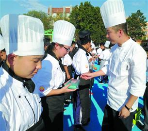 作为黄岛泰成喜来登酒店行政总厨,李建宝昨在高一5班授刀收徒,跟他一起收徒的还有同一酒店的人力资源经理崔燕玲。“我们同为导师,但分工不同,李总厨负责指导专业技能,我则从人力资源方面培训学生,为他们职业规划、职业发展做指导。”崔燕玲说。高一5班班主任王江虹向记者介绍,两位导师将在未来2年时间内担任孩子们的行业师傅,指导学生合理规划职业生涯、了解渗透企业文化、组织学生定期走进企业,校技能大赛期间和创业美食节期间,导师还将亲自上阵,指点孩子们菜品设计制作。