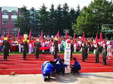 青岛十七中秋季运动会开幕式以“改革开放四十年,十七学子赞辉煌”为主题,校长安伯贞介绍,运动会不仅是运动、协作、拼搏的体育赛事,更是对同学们进行思想道德教育、知识学习、实践体验、展示自我、增长才干的学校课程,大家可以在活动中有收获、有提高。开幕式上,同学们以情景剧、舞蹈、诗歌朗诵、历史重现等多种形式对40年间的重大事件进行了现代意义上的创新与演绎,既展现了十七中学子深厚的家国情怀、可贵的探索精神和昂扬的精神风貌,也传递着社会主义核心价值观的爱国、敬业、诚信、友善等价值准则。