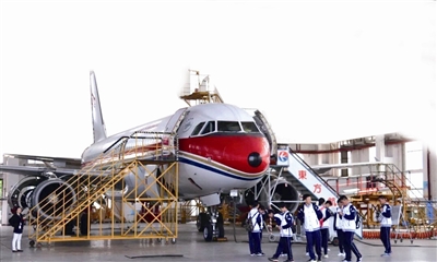 青岛二中理工MT学生走进航空公司,学习飞机知识,探索飞行奥秘。