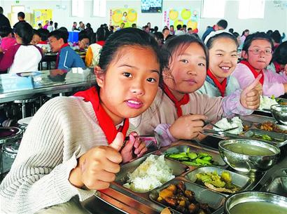 牛腩炖土豆、肉片茭瓜、碧绿小油菜、玉米粥、琴牌酸奶……端着盛满香喷喷饭菜的餐盘,孩子们找到自己的位置,开始了一天最盼望的一餐。而在餐桌一侧,老师已经在几分钟前,提前为每名学生盛好了汤,暖心地摆在每个位置上。 “我们全校57名老师,48名老师担任正副班主任,孩子在校的每一餐,正副班主任都会与他们同桌用餐。 ”徐晓燕告诉记者,根据学生们不同的用餐要求,餐厅提供米饭和馒头两类主食,在提倡学生按需取用、光盘行动的同时,吃完仍有需要的学生还可以续餐。