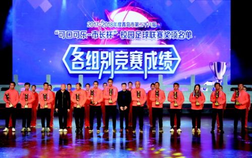 本报11月10日讯 11月10日下午,由青岛市教育局、青岛市体育局、第十四届全国学生运动会青岛市筹备办主办的青岛市第二十八届“可口可乐——市长杯”校园足球联赛颁奖盛典暨第十四届全国学生运动会600天倒计时启动仪式在青岛艺术学校实验剧场举行。现场颁出了此届校园足球联赛各组别获奖单位、“希望之星”、金银铜靴奖。