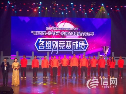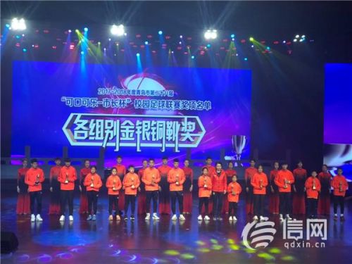 信网11月12日讯 11月10日下午,由青岛市教育局、青岛市体育局、第十四届全国学生运动会青岛市筹备办主办的青岛市第二十八届“可口可乐——市长杯”校园足球联赛颁奖盛典暨第十四届全国学生运动会倒计时启动仪式在青岛艺术学校实验剧场举行。出席盛典的领导和嘉宾为青岛市第二十八届“可口可乐-市长杯”校园足球联赛各组别获奖单位、“希望之星”、金银铜靴奖获奖代表颁奖;同时还举行了第十四届全国学生运动会倒计时600天启动仪式。