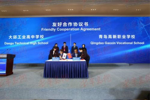 闭幕式上,俄罗斯圣彼得堡市、韩国大邱广域市、青岛西海岸新区太行山路小学分享了国际合作与交流的经验,青岛高新职业学校与韩国大邱工业高中签署了友好合作协议。