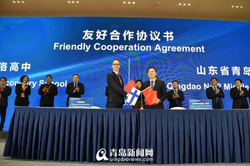 在签约环节中,共签署十一份合作协议。协议各方承诺在学生交换、教育科研、职业规划、行政合作、创业孵化、师生互访、学术交流、师资培训、网络课堂等方面加深合作,在基础教育、职业教育以及高等教育方面深化交流。其中,青岛市教育局与法国布雷斯特市、德国雷根斯堡市、芬兰萨翁林纳市、克罗地亚里耶卡市、美国长滩联合学区分别签约,青岛市人民对外友好协会与俄罗斯圣彼得堡国际交流协会签署加强合作交流备忘录。青岛理工大学与法国布雷斯特高等商学院、青岛二中与芬兰萨洛市萨洛高中、青岛十六中与泰国清迈府万塔诺泰学校、青岛崂山一中与英国南安普顿市伊臣中学、青岛博文小学与韩国大邱三英小学分别结为友好学校。