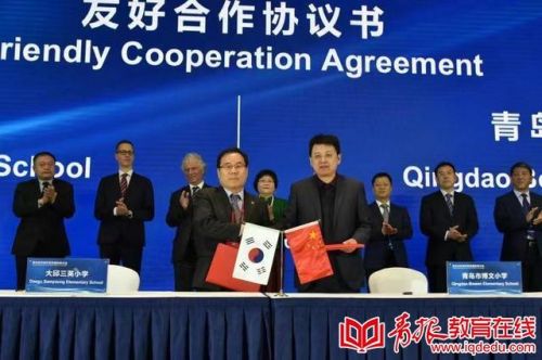 在签约环节中,共签署十一份合作协议。协议各方承诺在学生交换、教育科研、职业规划、行政合作、创业孵化、师生互访、学术交流、师资培训、网络课堂等方面加深合作,在基础教育、职业教育以及高等教育方面深化交流。其中,青岛市教育局与法国布雷斯特市、德国雷根斯堡市、芬兰萨翁林纳市、克罗地亚里耶卡市、美国长滩联合学区分别签约,青岛市人民对外友好协会与俄罗斯圣彼得堡国际交流协会签署加强合作交流备忘录。青岛理工大学与法国布雷斯特高等商学院、青岛二中与芬兰萨洛市萨洛高中、青岛十六中与泰国清迈府万塔诺泰学校、青岛崂山一中与英国南安普顿市伊臣中学、青岛博文小学与韩国大邱三英小学分别结为友好学校。