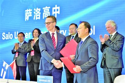 青岛第二中学与芬兰萨洛高中签署友好合作协议书。