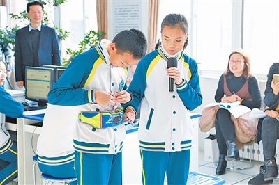 人工智能、自主开发教材、项目源于生活是崂山区育才学校STEAM教育的三大特色。崂山区育才学校信息技术老师位文远说,学校参与开发的《中小学STEAM课程创新与实践》教材,分别面向小学、初中各学段的学生。教材基于创客核心板进行设计,通过核心板可以连接控制各种工业级的传感器,实现各类实际应用环境场景的构建。每本教材都涵盖了若干个实际项目,这些项目都源自学生日常生活和学习中发现的问题,比如智能学习桌、流浪猫的家、校园气象站、智慧菜园等,学生通过学习人工智能、软件及硬件开发等相关知识,设计产品解决方案,遵循“发现问题—研究问题—解决问题”的项目化教学方式。