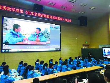 英语阅读到底应该以讲解词句为主?还是重视篇章结构,忽视词句?针对中学英语一线教学中的难点问题,青岛市英语学科带头人、青岛市教学能手崔丽华带领团队9年探索,国内首创了“生本多能英语整体阅读教学”模式,解决了中学英语阅读教学中阅读零散化、理解不深刻、阅读能力弱等问题。近日,山东省优秀教学成果推介会暨学科教学现场会在青岛第二实验初中学术报告厅举行。二实验初中崔丽华老师带领课题组的成员,向全市英语老师展示了“生本多能”的英语阅读教学模式。