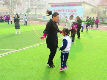近日,人民路第一小学组织开展了为期一周的 “阳光下运动 快乐中成长”2018年校园冬季健身活动决赛。本次冬季系列健身活动,分为预赛和决赛两个阶段,在全校掀起了新一轮的运动热潮。决赛阶段全校师生和部分家长共同参与其中,共设集体跳大绳、集体钻山洞两个集体项目和单摇跳绳、一带一跳绳、踢毽子、转呼啦圈、教师跳绳、亲子一带一跳绳等六个个人项目,全校参与率达到100%。比赛让健康融入到每一个家庭,共同搭建起生生沟通、师生沟通、家校沟通的桥梁,使每一位参与者都享受到体育健身带来的乐趣。 记者 王晓雨