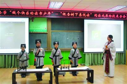 近日,香港路小学以“做个快乐的读书少年”为主题,进行了阶段阅读成果展示会。来自不同学段、不同年级的孩子们以多种形式向与会的领导、评委、老师、家长们汇报了近一学期的阅读收获。低年级的亲子绘本讲故事和《弟子规》情景剧,让家长和孩子惊叹不已;中年级分享了平日里老师引领阅读的好方法,又交流了自己课外阅读的点滴感悟;高年级的精彩辩论和读书访谈则将阅读成果展示会推向了高潮,现场辩手唇枪舌剑,论点鲜明,六年级组的访谈更是带动全场观众的阅读思考,令在场的评委为之赞叹。 记者 王晓雨