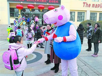 嘉峪关学校学生一进校门接到了“文明实践”大红福包。