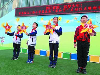 怀揣对新学期的憧憬向往,昨日上午,青岛东胜路小学在操场举行 “积极践行十个一 争做追梦好少年”开学典礼。落实青岛市启动的“十个一”行动,学校将10项具体内容与“集赞有礼”评价体系有机融合,启动“集赞亮星”计划,着重打造“小手拉大手师生同行十个一”的特色品牌。开学典礼上傅宏老师带领二年级的“小星星们”为大家助力,让每一个东胜人立足基础、培养兴趣、开发潜能、养成习惯、从而终身受益。