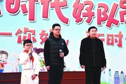 鞍山二路小学校园小主播上台“动态播报”。