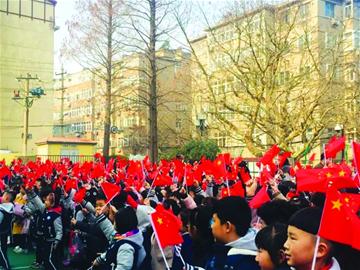 本报2月25日讯 春节期间,央视新闻频道快闪系列活动——新春唱响“我和我的祖国”,在北京、青岛等城市掀起快闪热潮。25日的开学典礼上,岛城的小学也将“我和我的祖国”快闪活动搬到了校园里,全校师生与家长代表一起,用歌声表达对祖国的热爱。