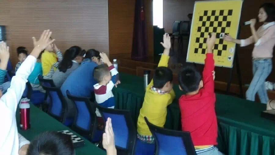 这次公益课堂受到了广大小朋友和家长和的热烈欢迎,报名参与的小朋友30多人,大大超过了招生人数。大眼睛的王老师讲课生动有趣,很快吸引了小朋友们的注意力。王老师讲解了国际象棋的礼仪、认识棋牌、棋子及摆法等,现场的小朋友们非常感兴趣,积极举手抢答问题!