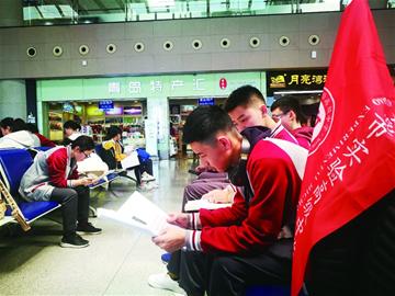 “孩子们,加油!等你们凯旋。”24日中午,青岛机场二楼安检通道入口处,2018级2班43名学生,正在班主任徐真的带领下准备安检。不同于前来送行家长们的依依惜别,统一身着“状元红”校服的学生们脸上,满是兴奋和期待。“从一入学我就知道学校有这个传统,所以一直特别期待。 ”学生王胤均说,这是自己长这么大,第一次和全班同学集体出行。