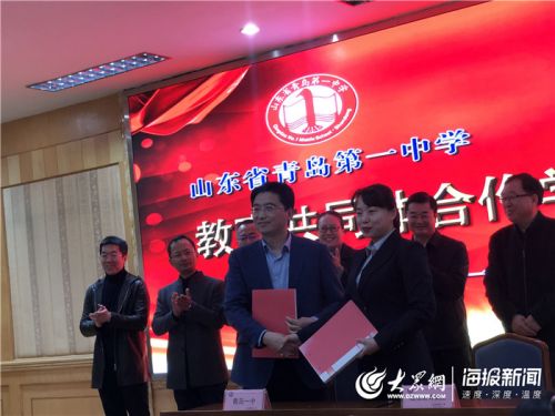 大众网青岛·海报新闻3月25日讯(记者 张雅新)“整合优质教育资源、提升学生核心素养,实现报团发展”……2019年3月25下午,青岛一中与超银教育集团、青岛启元学校的小初高一体化研究教育共同体签约仪式在青岛一中学术报告厅隆重举行。各成员学校将围绕共同关注的主题,通过合作、对话、活动等载体,在课程研究、教师培养、学科建设、家校教育、学生成长和生源输送等方面开展广泛深入的合作。