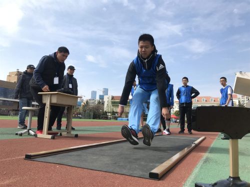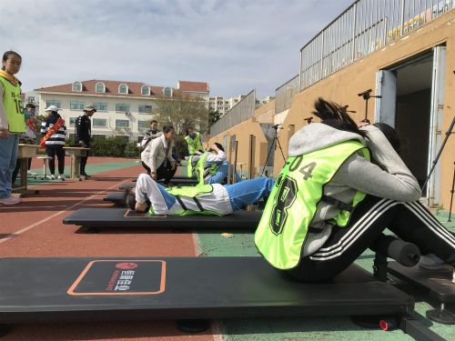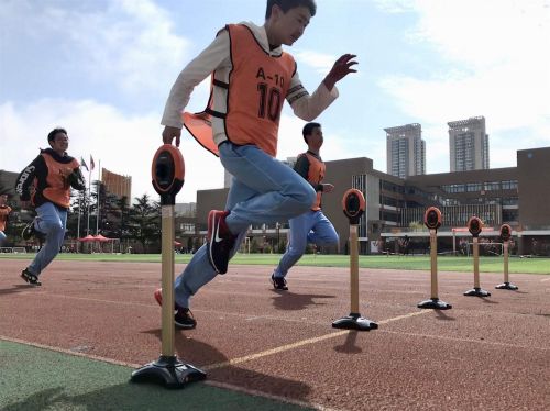 变化较大的还有芯片感应腰带。在男生1000米和女生800米项目中,每个考生在考前都领到一条标有对应号码的腰带,腰带内部藏有感应芯片。在终点处铺有一块蓝垫子,考生每次跑过这块蓝垫子,腰带都会自动感应并把数据传输到计时器上。当考生跑完规定的圈数,时间和成绩就会自动显示在屏幕上。考官介绍,去年这项考试也用到了芯片感应技术,但由于当时的感应垫无法感应到较高的高度,考生只能把带子系在脚上,有些考生感觉跑起来不是很舒适;今年感应设备升级,考生把带子系在腰上也能灵敏感应到,更有利于考生能力的发挥。