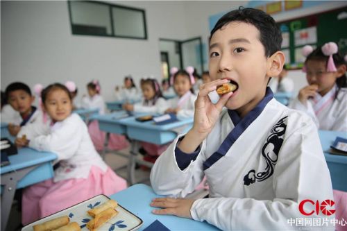 4月23日,青岛西海岸新区香江路第一小学举办世界读书日咏春(咏春诗)、诵春(诵春文)、品春(吃春卷)、饮春(饮春茶)等活动,来自全校千余名小学生诵读了《三字经》《唐诗三百首》等国学经典,让同学们领略传统文化的魅力。