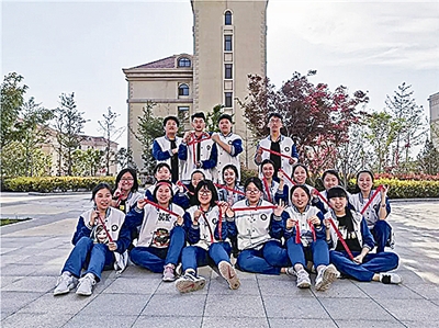 ■青岛三十九中为高三学子举行红丝带祝愿激励活动。