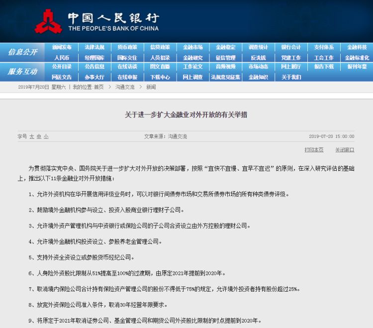 为贯彻落实党中央、国务院关于进一步扩大对外开放的决策部署,按照“宜快不宜慢、宜早不宜迟”的原则,在深入研究评估的基础上,推出以下11条金融业对外开放措施: