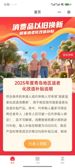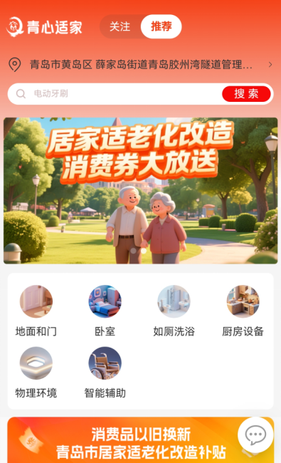 日前,青岛市2025年消费品以旧换新居家适老化改造项目正火热推进,此次项目打破户籍限制,对拟改造住房位于青岛市行政区域内的年满60周岁的老年人,予以产品成交价格30%、每人最高1.5万元的补贴支持。为便捷老年群体参与,项目构建了多维度参与路径,实现了“申领-选购-验收”全流程优化。项目启动以来,已累计为4000户老年人家庭提供改造,努力让“安全、便捷、舒适”的适老居家环境走进千家万户。